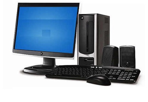 Desktops, monitors, and essential accessories like keyboards, mice, and bags for home or office use.